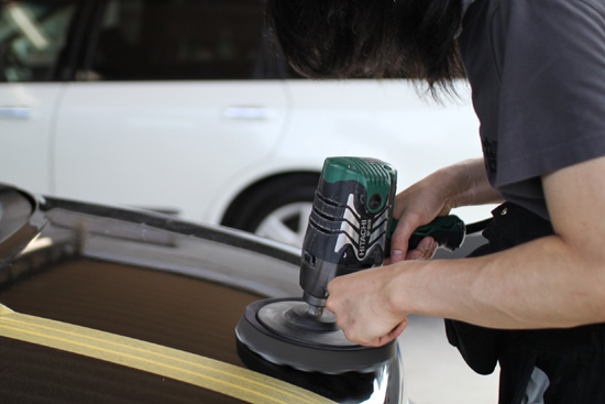 必要な箇所をマスキング → 電動ポリッシャーによる専用バフでのコンパウンド磨き(2回磨き)