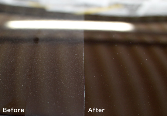 完成。Before&Afterの違いを比べて下さい!(写真の車両は、元々塗装の中にわずかにラメが入っております。)