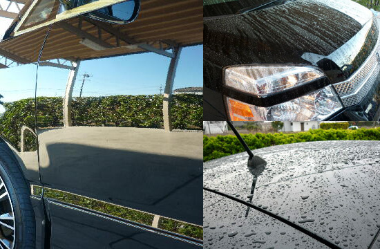 コーティングのおかげで汚れが付着しづらくなっているので、水洗いだけで十分綺麗になりますので、 洗車はかなりラクになります。 ※汚れが絶対に付着しないわけではございません。